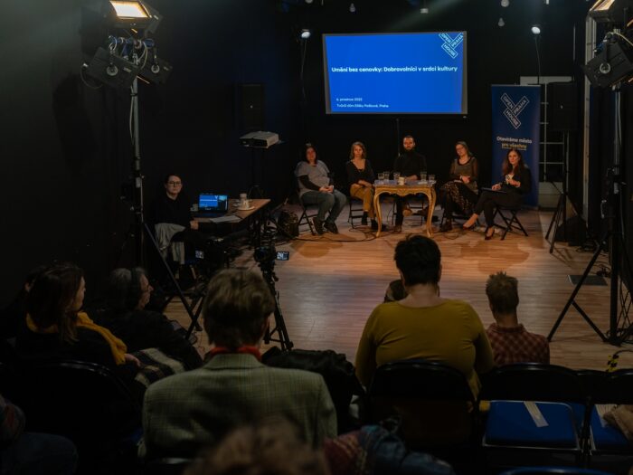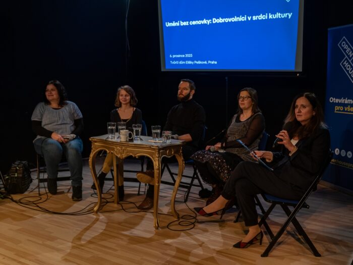 U příležitosti Mezinárodního dne dobrovolníků jsme v prosinci uspořádali debatu o přínosech dobrovolnické práce v kulturním a uměleckém prostředí. Kromě Kláry Veselé za Open House Praha se jí zúčastnili i Ondřej Kamenický za festival Jeden svět a Eliška Hůlová, produkční festivalu Povaleč. Všechny jmenované organizace mají s prací dobrovolníků bohaté zkušenosti. Bez jejich pomoci by se nemohly uskutečnit. Cílem debaty bylo hlouběji pochopit roli dobrovolnictví v kultuře a poukázat na jeho význam pro společnost.