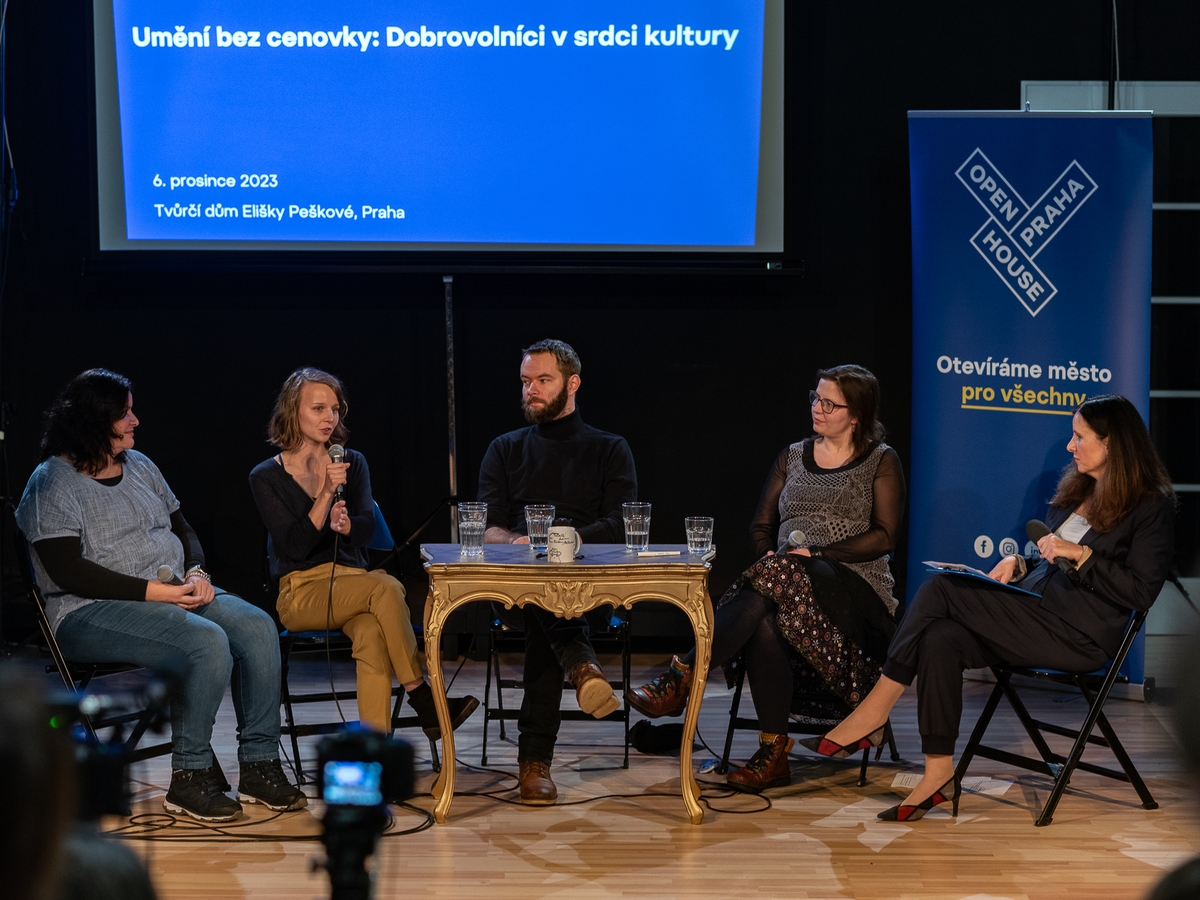 U příležitosti Mezinárodního dne dobrovolníků jsme v prosinci uspořádali debatu o přínosech dobrovolnické práce v kulturním a uměleckém prostředí. Kromě Kláry Veselé za Open House Praha se jí zúčastnili i Ondřej Kamenický za festival Jeden svět a Eliška Hůlová, produkční festivalu Povaleč. Všechny jmenované organizace mají s prací dobrovolníků bohaté zkušenosti. Bez jejich pomoci by se nemohly uskutečnit. Cílem debaty bylo hlouběji pochopit roli dobrovolnictví v kultuře a poukázat na jeho význam pro společnost.