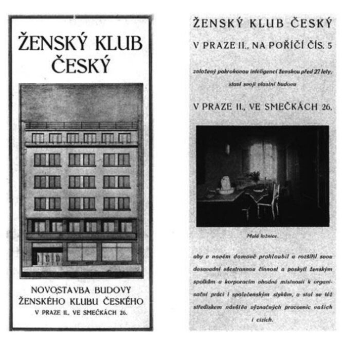 Na závěr je nutné zmínit ještě původní spolkový dům a svobodárnu Ženského klubu českého, který byl podle návrhu Milady Petříkové-Pavlíkové, včetně interiérů, postaven v pražské ulici Ve Smečkách 26, kde se dnes nachází divadlo Činoherní klub. Jedná se o velkorysé sídlo, v přízemí byla situována kavárna, klubové a reprezentativní místnosti, knihovna a přednáškový sál, v dalších patrech pak také ubytovna. Dům byl postaven ve funkcionalistickém stylu, symetrii jeho fasády porušuje parter s prosklenými stěnami, které propojují interiér s exteriérem. Projekt vypracovala architektka v roce 1929 a budova byla dokončena v roce 1933. Je důležité zmínit fakt, že Milada Petříková-Pavlíková připravila svůj návrh bez nároku na honorář a nebyla to jediná taková příležitost. Byl to jistě její příspěvek k dobovému ženskému emancipačnímu hnutí, které v této době procházelo v Československu velkým rozvojem a které podporoval i prezident Tomáš Garrigue Masaryk pod vlivem své americké ženy Charlotty.