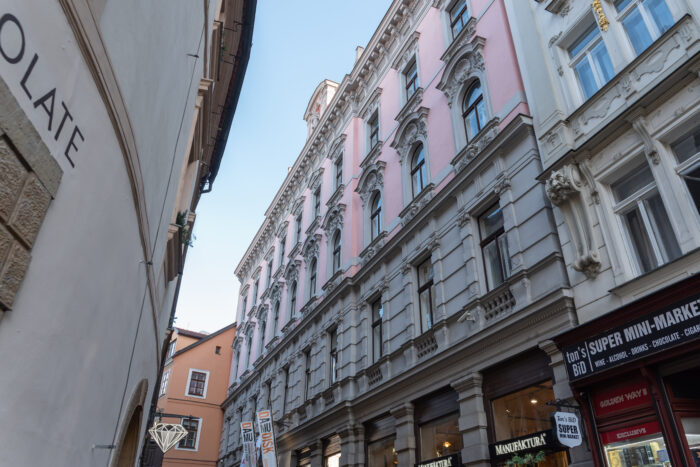 Na Filmové a televizní fakultě (FAMU) se těšte na palác Lažanských, který je jedním z nedoceněných, ale přitom mimořádně vzácných klenotů 19. století. Jde o jeden z posledních šlechtických městských paláců, jaké lze v Praze nalézt; velmi pokrokově přitom kombinuje funkci reprezentativního aristokratického sídla s činžovním domem s komerčními prostory. Svými nárožními věžemi připomínajícími francouzské zámky vytváří hrdý, a kosmopolitně působící protipól svému mladšímu sousedu – Národnímu divadlu. Palác je dnes sídlem FAMU, ale najdeme zde i restauraci Parnas a kavárnu Slavie, které spoludotvářely elegantního ducha pražského kulturního prostoru v průběhu 20. století. Palác Lažanských byl však domovem múz již v době své nejranější existence, neboť právě zde bydlel a tvořil Bedřich Smetana v letech, kdy zkomponoval svá nejlepší díla, včetně komické opery Prodaná nevěsta.