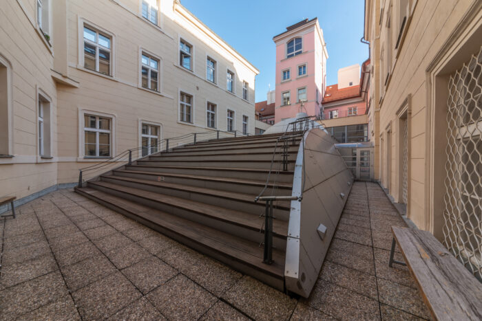 V komplexu budov Divadelní fakulty (DAMU) uvidíte neuvěřitelnou směsici stylů a objektů, pocházejících z různých dob naší historie. Středověké sklepy, barokní palác, přebudované stáje, veřejné reprezentativní sály z doby národního obrození, ale i komerční prostory, to vše se tu střetává spolu s postmoderními intervencemi, a především nesmírně živou současností velmi náročného provozu špičkové umělecké školy. DAMU se nachází mezi dvěma historicky velmi významnými ulicemi, jimiž doslova procházela naše historie: směrem do Řetězové ulice se nalézá starý palác Kokořovských z Kokořova, jehož sousedem je Dům pánů z Kunštátu. Na něj pak navazuje křídlo DAMU zbudované pro Svatováclavskou záložnu, a také relativně moderní křídlo směrem do ulice Karlovy. Uprostřed celého komplexu v místě bývalého dvora se pak nachází Divadlo DISK, jehož postmoderní formy připomínají ponorku.