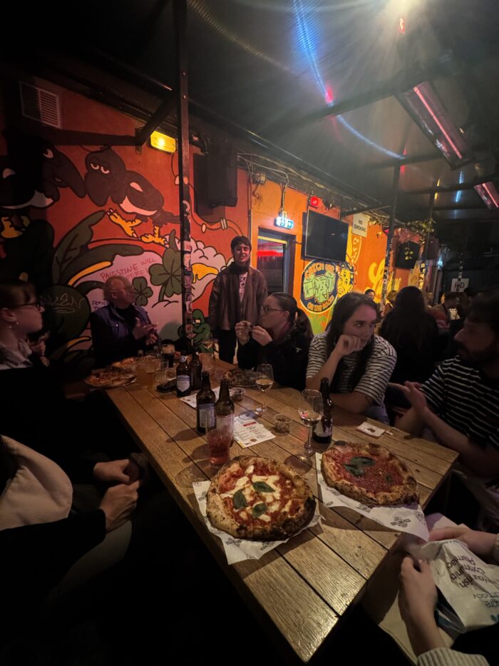 Nedělní večer byl vyhrazený pro velkou závěrečnou party všech dobrovolníků v prostorách využívaných IAF pro pop-up eventy a výstavy. Postupně se nás sešlo zhruba sto, vrátili jsme vesty a pustili jsme se do obligátní pizzy. Následně se uskutečnil pub quiz primárně orientovaný na Irsko a Dublin, což částečně limitovalo zapojení nás ze zahraničí. Na každý pád se jednalo o ideální ukončení festivalového víkendu i festivalu jako celku. Na všech zúčastněných byla znatelná úleva a potěšení z odvedené práce.