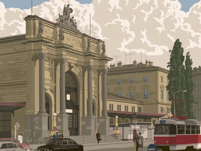 This year’s festival visuals feature an iconic Prague landmark that no longer exists. Illustrator Jan Šrámek has depicted one of Central Europe’s most beautiful railway stations – Praha-Těšnov Station (also known as Denis Station). 2025 marks 150 years since its opening and 40 years since its demolition to make way for a major highway.