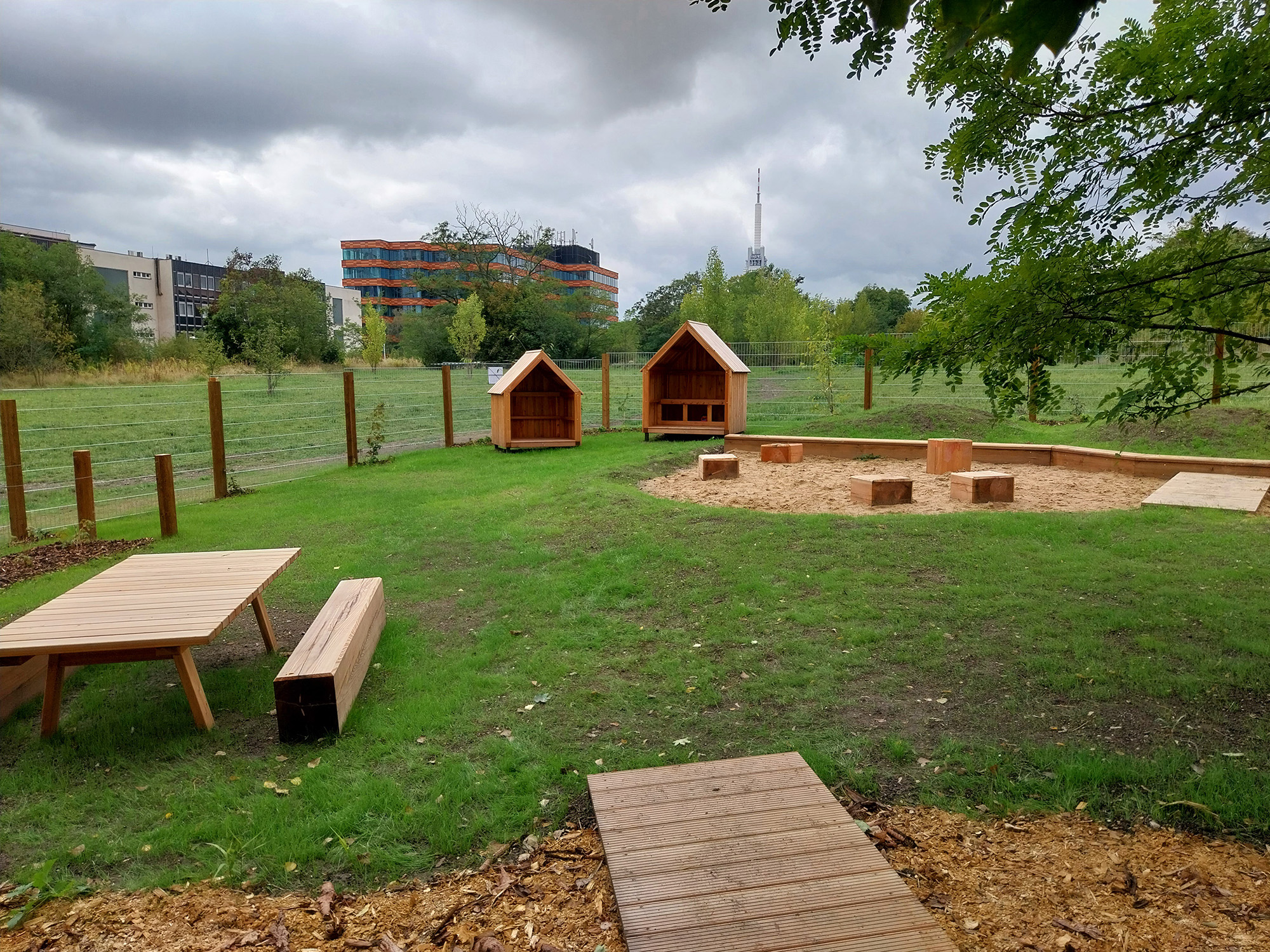 Another educational approach may be to radically deny the internal environment of the school altogether. Many forest nurseries work with this idea, whose philosophy is the saying “there is no such thing as bad weather, only inappropriate clothing”. One example of this working is the Žižkov forest classroom of the Milíčův dům Nursery School, which was realized by two studios: Terra Florida (Zuzana Štemberová) took care of the landscape design and Atelier Jasné (Jana Šaňáková) is the author of the concept and architectural and construction design. Small wooden houses for occasional living are scattered among the trees, the garden provides a number of natural play areas: hiding places among the bushes, hollows, hills, a fireplace or a vegetable garden. The realisation is proof that even within the city it is possible to create a place for free movement where children grow naturally in harmony with nature and its cycles.