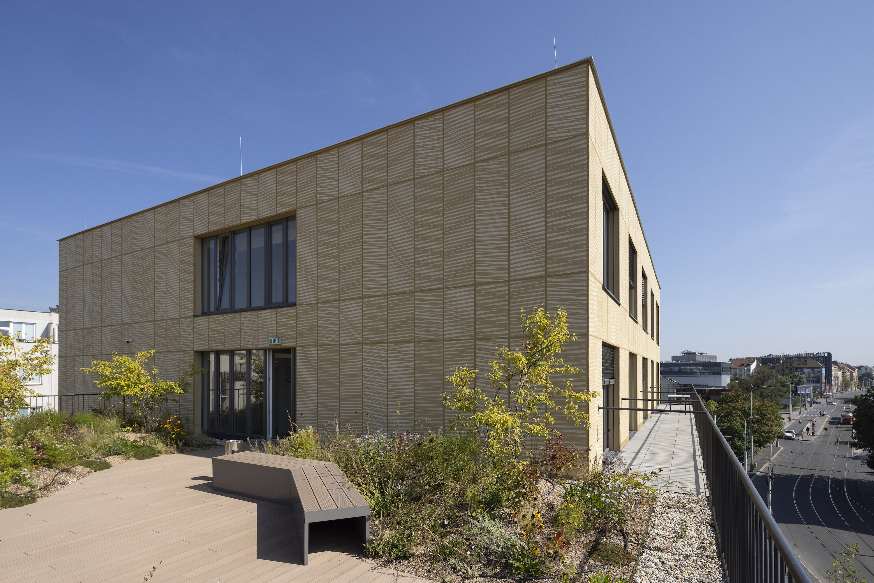 Climate change is a phenomenon facing many cities. The solution lies both in current technology and in foreign inspiration from countries where people have been adapting to dry and hot climates for centuries. The DRNH design team decided to follow this path when designing the new building of the Faculty of Tropical AgriSciences, Czech University of Life Sciences in Suchdol. The construction of the facade follows the original faculty building from the 1960s, but the material and morphological design is contemporary. The form of the southern façade is an important element in the climate measures. A steel structure has been erected here for planting bamboo trees that shade the interior spaces. In addition, the structure provides a number of other functions: relaxation, information and research. The vegetation has also made its way onto the residence roof. Learners can explore how the plants themselves help them replace mechanical and computer systems that elsewhere require heavy maintenance.